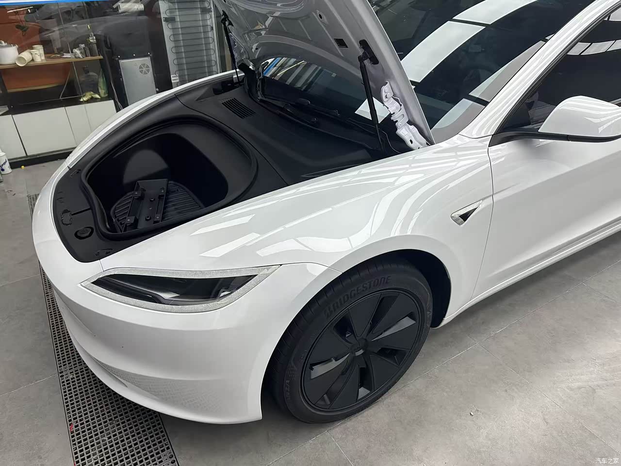 车身做工整体不错,白色的漆面是那种闪亮亮的白,太阳光底下看着很好看。但是交付的时候交付中心的工作人员说特斯拉的漆水不算厚,最好还是贴个车衣保护一下好一点。