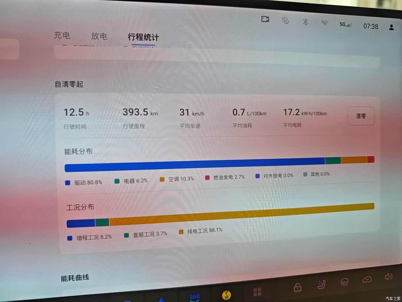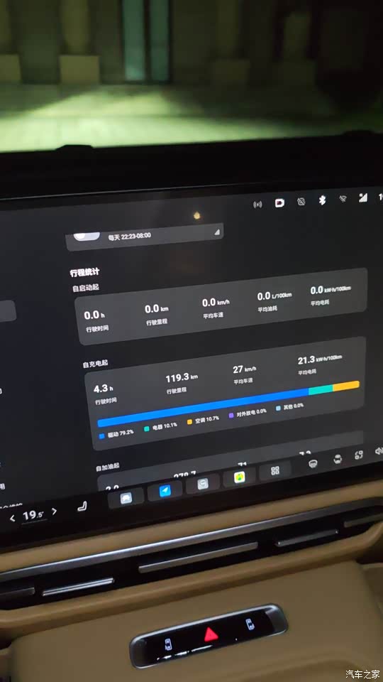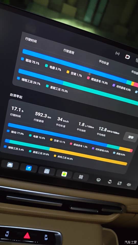 日常市区通勤,纯电模式完全够用,百公里电耗17-18kWh,家充桩谷电每度0.3元,一公里成本不到1毛钱。续航表现更是超出预期。官方说综合续航1411km,我实测高速120km/h巡航,满油满电跑了900多公里,服务区补了次电又跑了400公里,完全没续航焦虑。日常通勤用纯电模式,150公里的纯电续航足够我从萧山到临平来回两趟,不过冬天开暖风纯电续航会打八折,这也是电动车的通病,能接受。