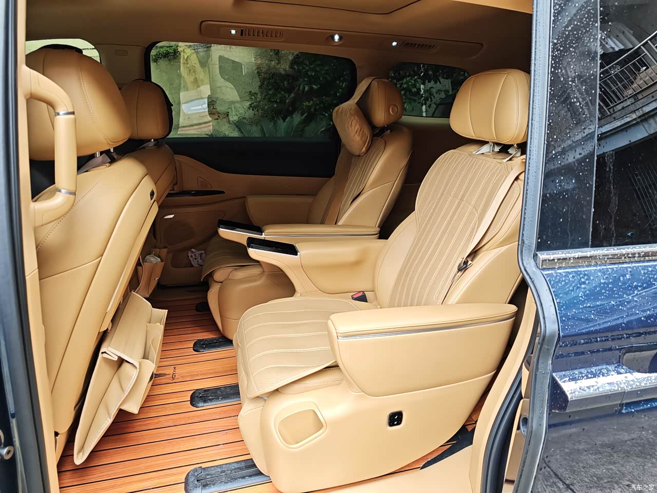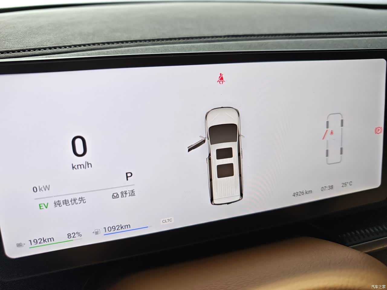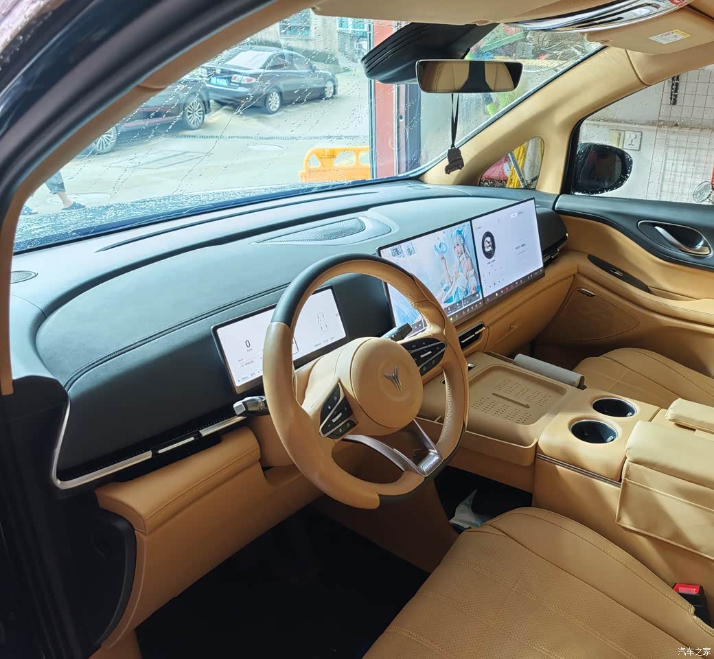 梦想家车内的智能配置也很亮眼,10.25英寸全液晶仪表加上双15.4英寸大屏,组成了智能化的部分,搭载着岚图逍遥座舱和高通骁龙8295芯片,操作起来很丝滑,界面也很酷炫 50W手机无线充电面板位置设计得也很合理,这下再也不用担心手机忘车上了。座椅材质是仿皮的,透气性还行,但跟真皮比起来差了点档次。