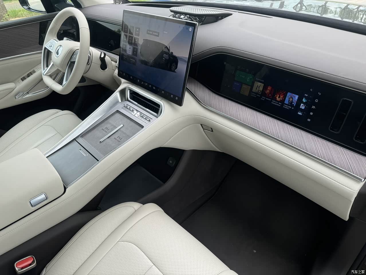 中控台大面积软皮+木纹饰板,摸起来不廉价;座椅皮质偏软,包裹性不错,但浅色内饰有点怕脏(建议选深色,我后悔了)。