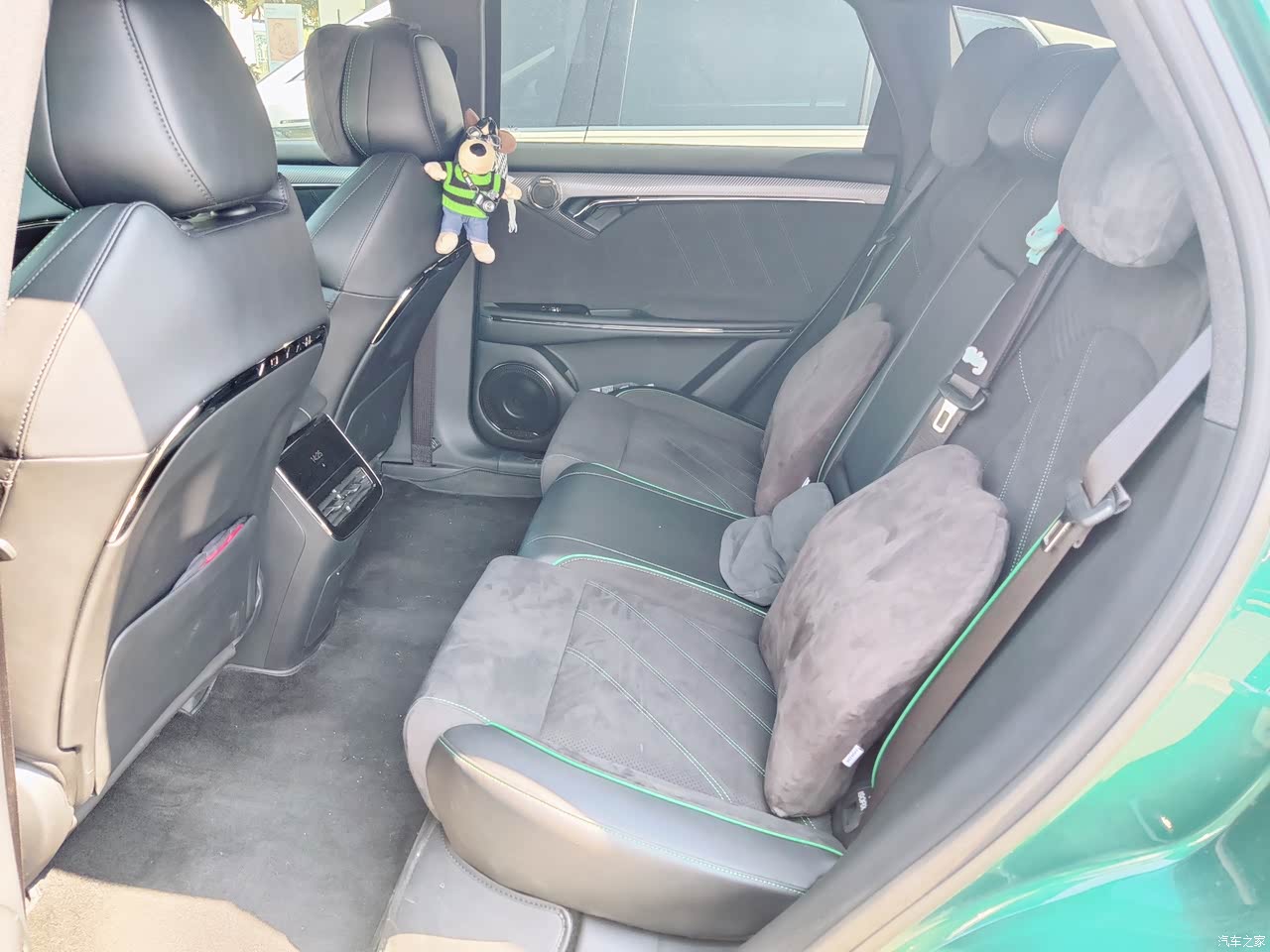 内饰:有豪华感,实用又环保 翻毛皮和金属拉丝材质的内饰设计很有豪华质感,软包部分触感细腻。启动车机的时候三联屏的设计很有仪式感,功能按键布局也还合理,操作便捷。同时新车几乎没有异味,整车非常环保。车辆配的音响质感也很好,平时开车听听音乐也很享受。缺点是后排座椅不支持调节,需要配合腰靠提高点舒适度。