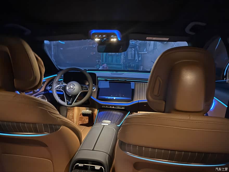 内饰是奔驰的强项,这点毋庸置疑。坐在里面看着环绕式渐变氛围灯,温馨,自然,还有一丝淡淡的优雅和轻奢。但新款在储物空间做的有点拉胯,连放手机的地方都没有,就一个无线充电的地方,还很隐蔽,杯架也不是那么好用,减分项。这个要学习一下国产新能源,储物空间做的相当棒。