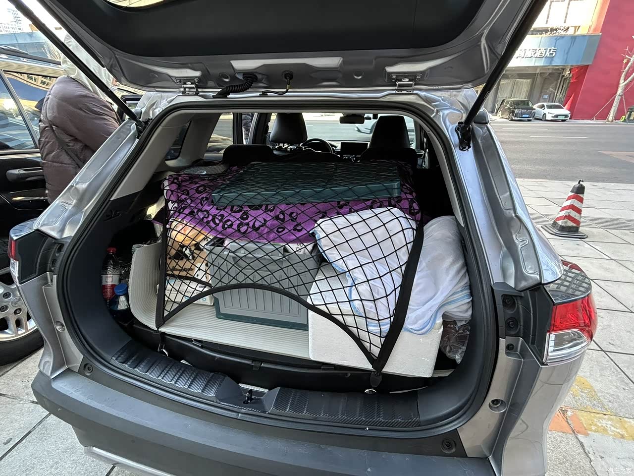我身高180,老婆176,坐在车里没怎么感到拥挤。谈不上宽敞,二个人够用了。调整好前排座椅后,感觉后排无法乘坐成年人,反正就我们两个人用这车,足够了。所以当初没有选购RAV4,省了好几个W。我车后备箱和后座都是放的行李。二个人出行,车内空间足够了。
