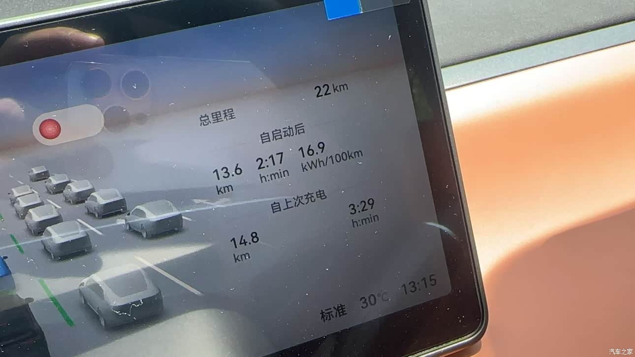 目前跑了100公里,正常开能耗在13左右,,然后猛猛加速开能耗在16,17左右,整个能耗还是非常不错的,这是在开空调的情况下