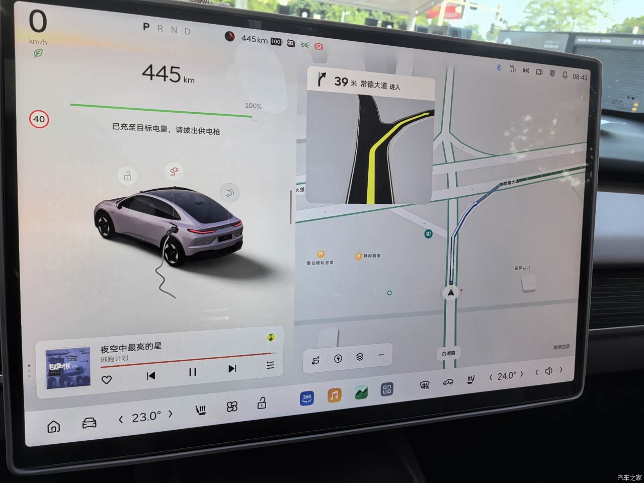 最满意的地方: 外观:这车外观颜值特别漂亮😍,紫外紫内,老婆试驾一下就看上了,小鹏,零跑,比亚迪都没有看上说有点丑。 空间:这车看着不是特别大,但是内部空间特别是后排大的有点夸张了,老婆调整完座椅,后排可以躺下了。不足就是现在新能源都有前备箱,差点意思😅😅 驾驶感觉:电车和油车开起来差异太大了,家里以前有一个欧拉小电车,这个车方向盘感觉更轻,转弯半径特别小,很容易上手。我开油车比较多 ,开这个车感觉少一点驾驭车的感觉,尽量不要开运动模式,提速太快,后排容易晕车。 电耗:我以前的小欧拉9.5电耗,这个车算是个中型车,目前电耗14.5,还算比较好。调整实际达成续航可以跑450,换电电池🔋93%,可以跑390。这个车机预估的实际行程还算比较准。(目前跑了1300公里,基本是1人,室外32度,空调开23) 智能驾驶:市区千万不要用,不出差错也会被人骂死,有滴滴笨😂😂😂,高速🛣比较好用,基本解放双手双脚。但是有个BF,超旁边大车时候,如果旁边大车不好好开,不在中间行驶,靠线或压线,正常开车我们习惯会往左打一点方向不和对方太近,这个车机还是在中间行驶,有点吓人。如果人为往左边打一点比较轻,车机会抢方向盘往右打这时候更吓人🤣🤣🤣 以上是目前使用状况和大家分享一下,大家可以参考