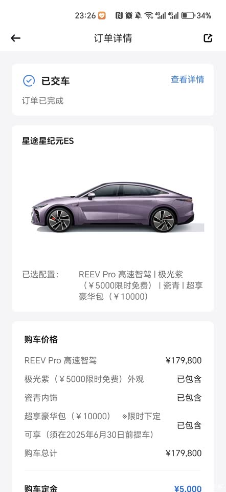 初见:在百无聊赖的某天,我走进了星途4S店,颜值、质感让人着实心动。这款车打动我的是极好的车身比例,很有韵味的紫色调外观以及青色内饰,于是在预售期间便早早下了单。随后完成试驾,前双叉臂后五连杆带来的行驶质感非常好,叠加五年免息以及预售权益,让我颇为心动,故在谈好价格以及各项优惠后就完成了锁单。曾经对增程车嗤之以鼻,但是现在我认为他完全满足了我日常的使用需求,目前为止行驶一千多公里,整体非常满意,唯一遗憾的是增程款上市时无树杈轮毂,颜值要打些折扣,这里要扣个小分; 空间:很大,C级轿车的尺寸带来了极大的后排和前排空间,本人180CM,翘个二郎腿没任何问题,头部空间也十分充盈,加上前排的座椅通风加热按摩等功能以及可以放倒的后排座椅,基本满足我的日常使用需求。但遗憾的是后备箱空间有些小,因为增程车的缘故,前备箱以及后备箱的隔间都被发动机和电机占用了,在后排座椅不放到的情况下储物空间显得没有那么充裕; 续航:买增程车就是为了日常上班用电,出远门或者自驾游用油混,这种模式完全契合了我的使用需求,加之奇瑞发动机优秀的热效率,也是我买这台车非常重要的原因之一。城区代步用纯电模式,标称255KMCLTC续航,205KM WLTC续航的电池,日常跑基本在180—220KM左右,完全够用。油混模式到底能跑多远没试过,不过周边自驾游过几次,加点油没任何续航焦虑的感觉非常好;希望后续奇瑞能继续优化能耗管理,努力让这台车的纯电续航变得更长,毕竟几毛一度的家充店是真的非常省钱,短途自驾没任何经济压力。 驾驶感受: 同级别来看还是非常牛的,标配前双叉臂后五连杆,过弯、加速和刹车都非常的稳,动力随叫随有,非常好。关上车窗,噪音控制也不错,风噪几乎没有,胎噪有一丝丝,影响不大。