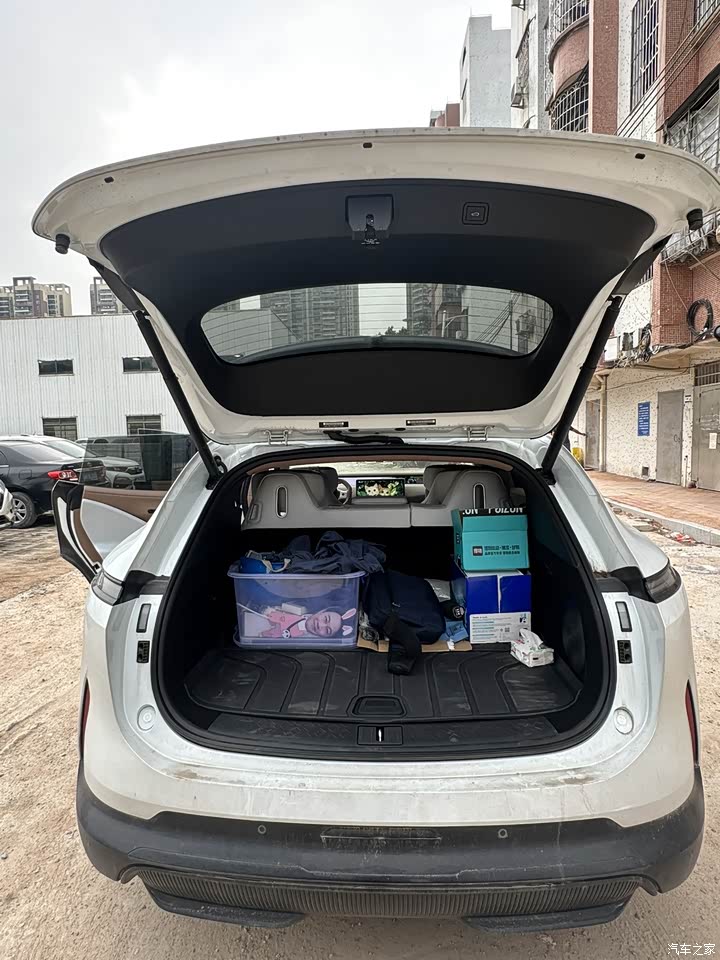 阿维塔的空间总体上算是比较中规中矩,车比较大,但是它的空间并没有配得上它这么大的车身空间的话,相对来说是在中型SUV中是有稍微稍微一点局促的,但是,我在用车方面,就是我跟我女朋友平时出去玩,还有我日常通勤,基本上后备箱放两个人的东西,放两个行李箱,然后再加上些平时的杂物,或者其他一些吃,总体够用。
