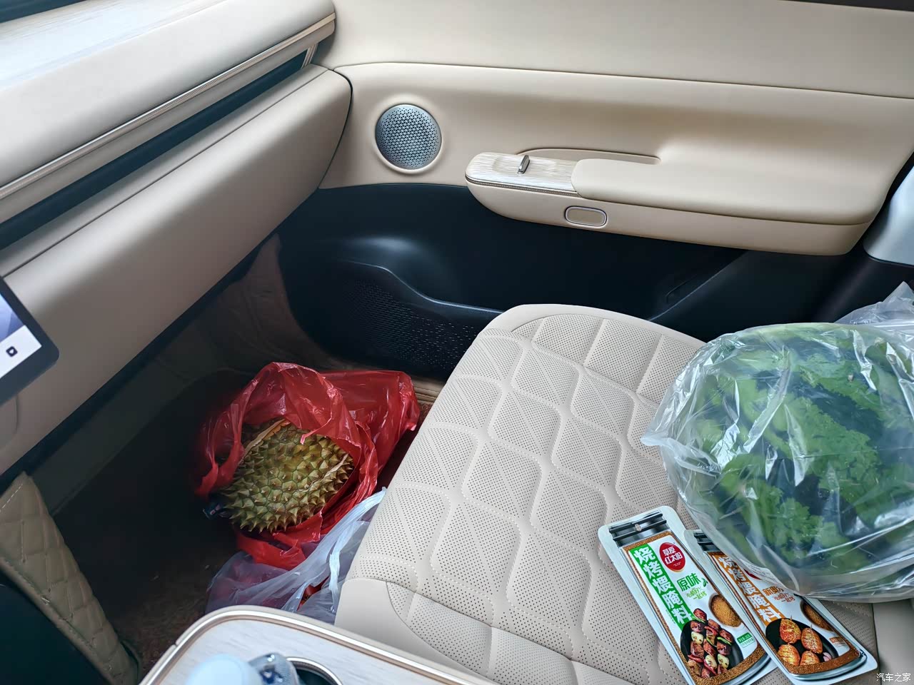 车内空间很大,这个是所有坐过我车的朋友都说我的车空间很大,因为et 是有玻璃天幕车内的头部空间是很足的,我的驾驶位把座椅调到最高都不觉得局促。 说一下后备箱的空间吧,后备箱的空间也很大,以前坐别人的车都是生怕东西带的多,现在是空间大到什么东西都可以带得下。 前排虽然少了手套箱储物,不过扶手箱这基本都能放下,目前东西少,感觉没啥影响,而且断开的扶手箱下面也能放东西,在车辆靠墙不方便,下车的时候从右边下也是很方便
