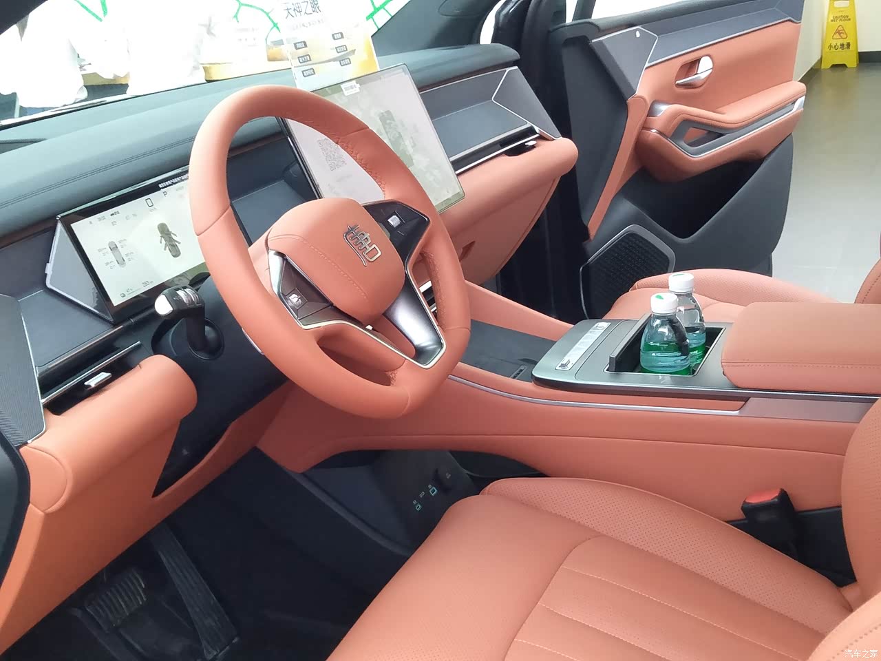 内饰个人不是很喜欢橙色,其他都还能接受,中控处干干净净的,就一块大屏减少了很多不必要的物理按键,也不会粘灰。车内还搭载了冰箱,可以放点喜欢的水果,也不担心坏,不错。
