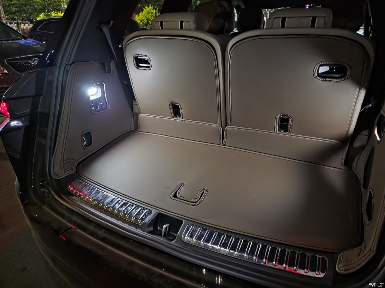 最不满意的就是二排没法完全放倒变成大床模式,二排只给了一个零重力座椅,另一个连推托也没给。内饰金属装饰条和外面暗金色不统一依然是镀铬。