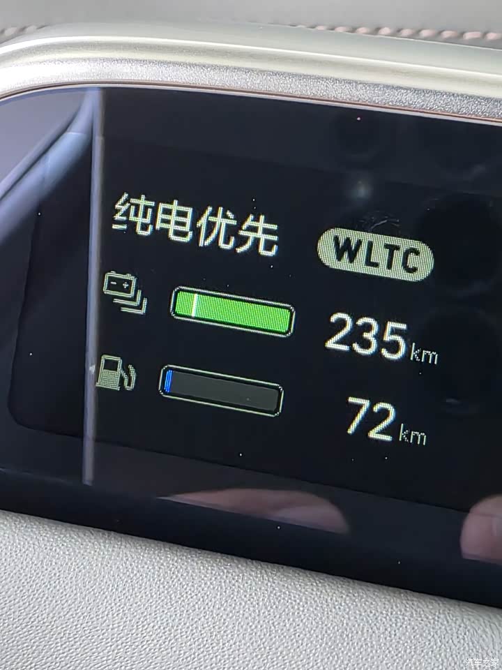 充满电wltc是235公里,实际不跑高速市区通勤里程是超出235的,高速大概打8折左右。这是实际体验,提车回来一分钱的油也没加,家里有充电桩,每天都充满,完全没必要只充90%,体验价值拉满。