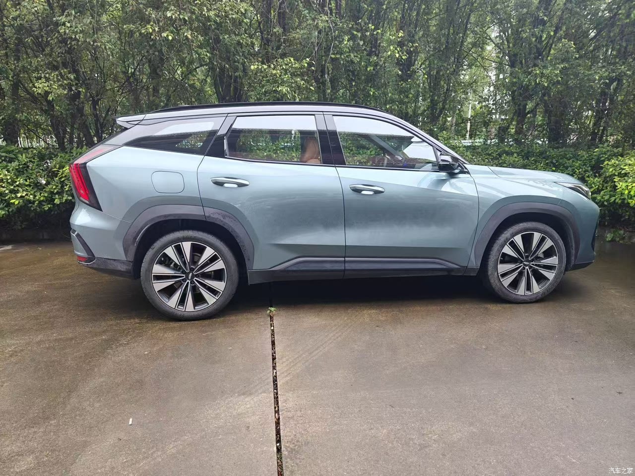 我最先被它的外观吸引,整体线条流畅又很有力量感,前脸独特,辨识度超高,开在路上回头率不低。车身的车漆厚实,光泽度也很好,看着就很有质感。