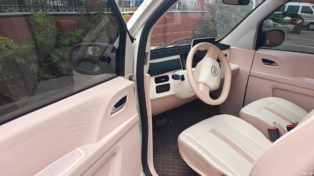 知豆彩虹的内饰,其实塑料感是有点强的,摸起来那种硬邦邦的感觉,不太高级。不过,这颜色搭配倒是挺时尚的,我买的那个粉色和白色的搭配,看着挺年轻,挺有活力的,也算弥补了点塑料感的不足。 座椅的舒适性我还挺满意的,软乎乎的,包裹性也还不错,开车的时候挺舒服的。就是这颜色太浅了,不耐脏,稍微有点灰尘或者脏东西就特别明显,得经常打扫,有点麻烦。 车里的按钮挺简洁的,就那么几个,操作起来不复杂,容易上手。整体来说,这内饰虽然塑料感强了点,但胜在时尚年轻,座椅也舒服,按钮简洁易用,对于一个微型车来说,也还能接受吧! 知豆彩虹这小车,还有个很人性化的,就是有个防儿童逃生锁还是挺贴心的,对于有小孩的家庭来说,这知豆彩虹在安全方面还是考虑得挺周到的。