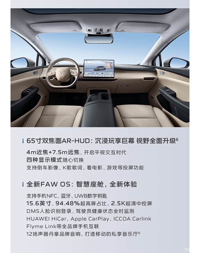 内饰:科幻片导演看了直呼内行,坐进车里,我第一反应是:“仪表盘呢?被外星人绑架了?”原来人家用65英寸AR-HUD把车速、导航全投影到前挡风玻璃上,开车像在玩《头号玩家》。中控15.6英寸大屏比我家平板还大,语音助手支持四川话和粤语,我试了句“幺妹儿,开空调”,它秒回:“要得!”——瞬间感觉自己成了川渝地区最靓的崽! 副驾的特殊照顾,我同事试坐后感慨:“这哪是开车?分明是躺进太空舱做SPA!”
