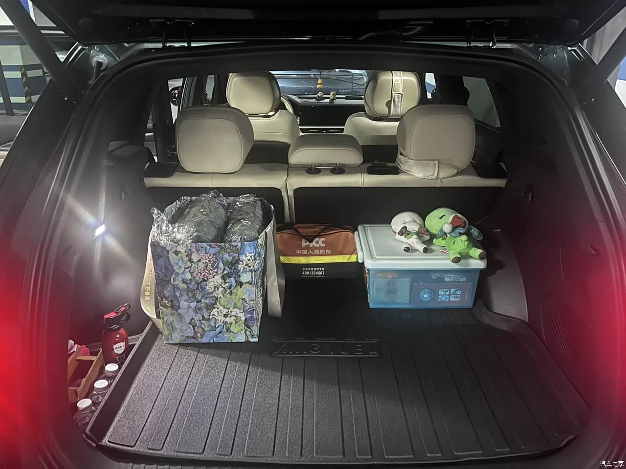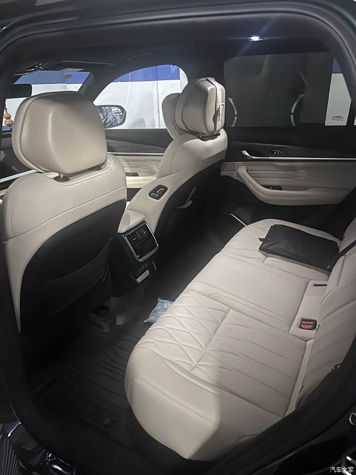 空间:空间舒适,越级享受 后座宽敞如“移动客厅”,2845mm轴距带来奢侈后排空间,地台接近全平。身高1.8米乘客膝部空间超两拳。座椅填充厚实,包裹性和支撑性俱佳,前排座椅通风和加热提升舒适性。内饰大面积采用皮质面料,柔软的皮质包裹触感细腻。配合多色氛围灯,感官体验媲美豪华品牌。后备厢常规容积较大,后排座椅支持比例放倒,扩展性强。