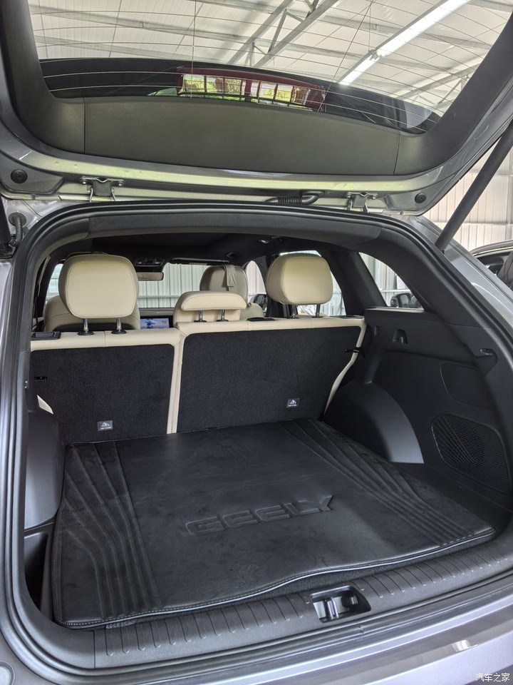 空间的话对比我的cx5就又要大一些了,马自达的空间确实没有什么优势。这个星越L我试了一下,后排我有三拳多的腿部空间,再加上主驾驶座椅的舒适配置,感觉真的入手之后我会抢着开星越了。后备箱看着也没什么问题,日常使用肯定是非常够装了。