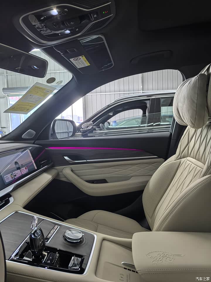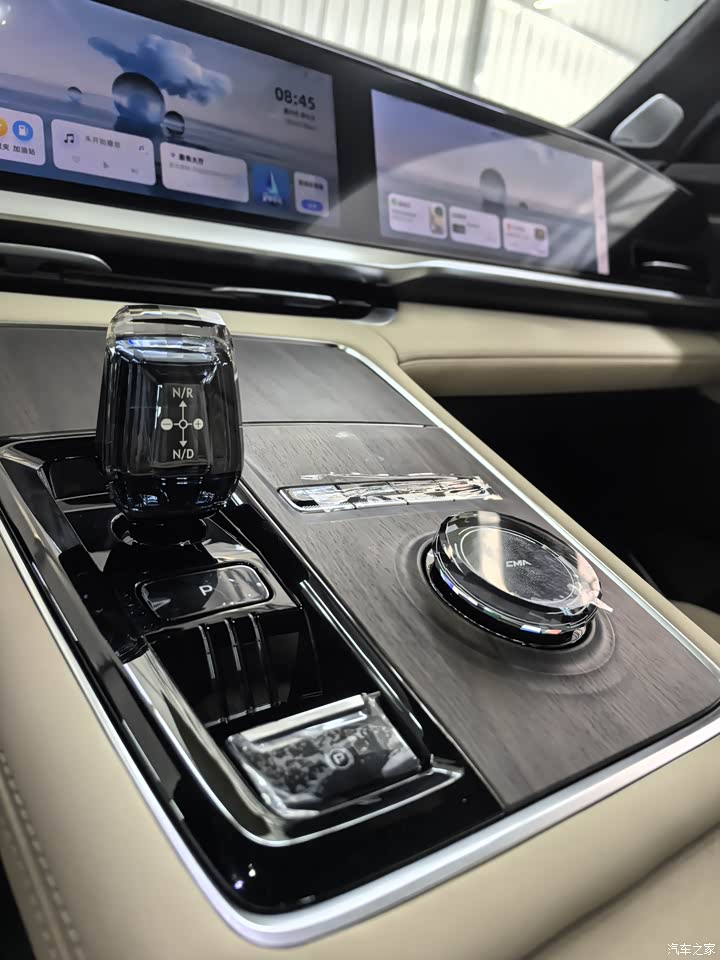内饰有种从毛坯房搬进了豪华套房的感觉,浅色搭配木纹饰板,视觉上比较温馨和高级,72色的四门环绕氛围灯,还可以联动切换。水晶档把加上水晶旋钮,仪式感拉满了。座椅的材质感觉也蛮高级的,再加上之前的车子都没有的ar实景导航、主驾头枕音响、大屏全液晶仪表➕双中控屏,不得不说在内饰配置这块,咱国产车确实是标杆。