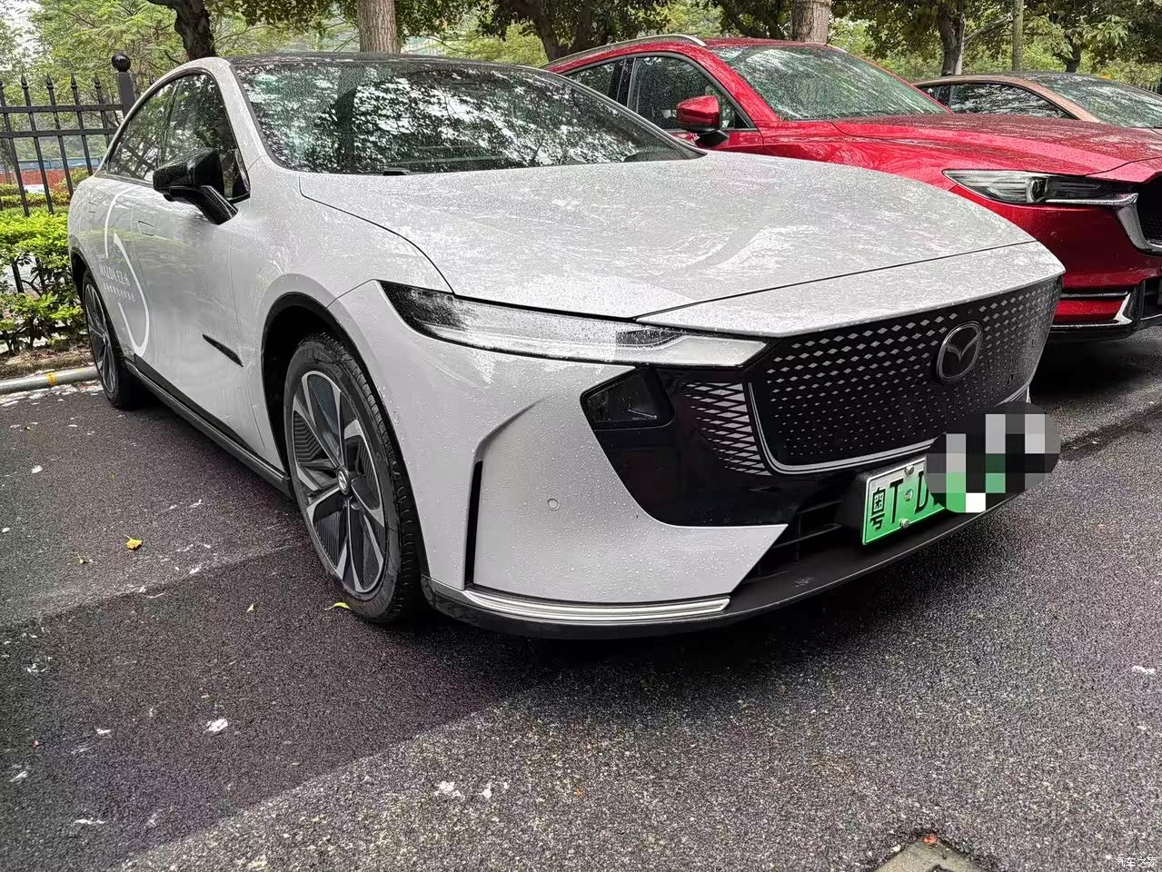 马自达EZ6这个车,我很喜欢这个车的外形有点像加大款的马6,红色的更好看,我觉得男人开红色的有点别扭,所以选了灰色,大家都知道马自达的油车二排空间都很小,不过EZ6这款车的空间还可以的,一直被人诟病的后排空间,这款车的后排真的超出了我的想象,没想到马自达还有空间这么大的车,没有了中间鼓起来那个包,符合我对电车的完美印象,后驱车操控性更好,空间也大,大屏幕也很有科技感,提车第二天,跑了一百多来公里,不满意的地方就是发现方向有点偏右,后来4S店那边让我回去调整,后面也搞好了,我个人很喜欢米色或白色的内饰,不过当时没有现车,由于用车心切,还是选了棕色内饰,棕色的翻毛皮饰板感觉很上档次,总体来说内饰还不错!怀挡的设计也比较高档,好像奔驰的车都是怀挡的,高大上,我买的是增程200至尊,本来想买纯电版本,父母有点担心续航不够跑长途,后面还是买增程,纯电200公里的续航,现在还没跑过长途,在市里上下班开,用的纯电模式,200的续航,不过也还没上高速,就是在市区转悠,纯电续航也够我瞎逛,轮胎宽操控很稳。驱动的电机平顺性也很好,基本没啥顿挫感,16.98万提的,价格是稍微贵了一点,好在功能全,跟其他牌子比,马自达的底盘调校我还是比较认可的,我自己有个旧车拿去报废享受国补2万,厂补一万五,当时保险又赠送了五千块,算下来能有4万的优惠,这么大的B级车,这么丰富配置,性价比很高,后备箱基本需求能满足,手机APP远程功能很方便,自己还自费配了一把遥控钥匙,还蛮有科技感的,全车14个喇叭索尼品牌,音质通透,下班路上听爵士乐简直是一种享受。