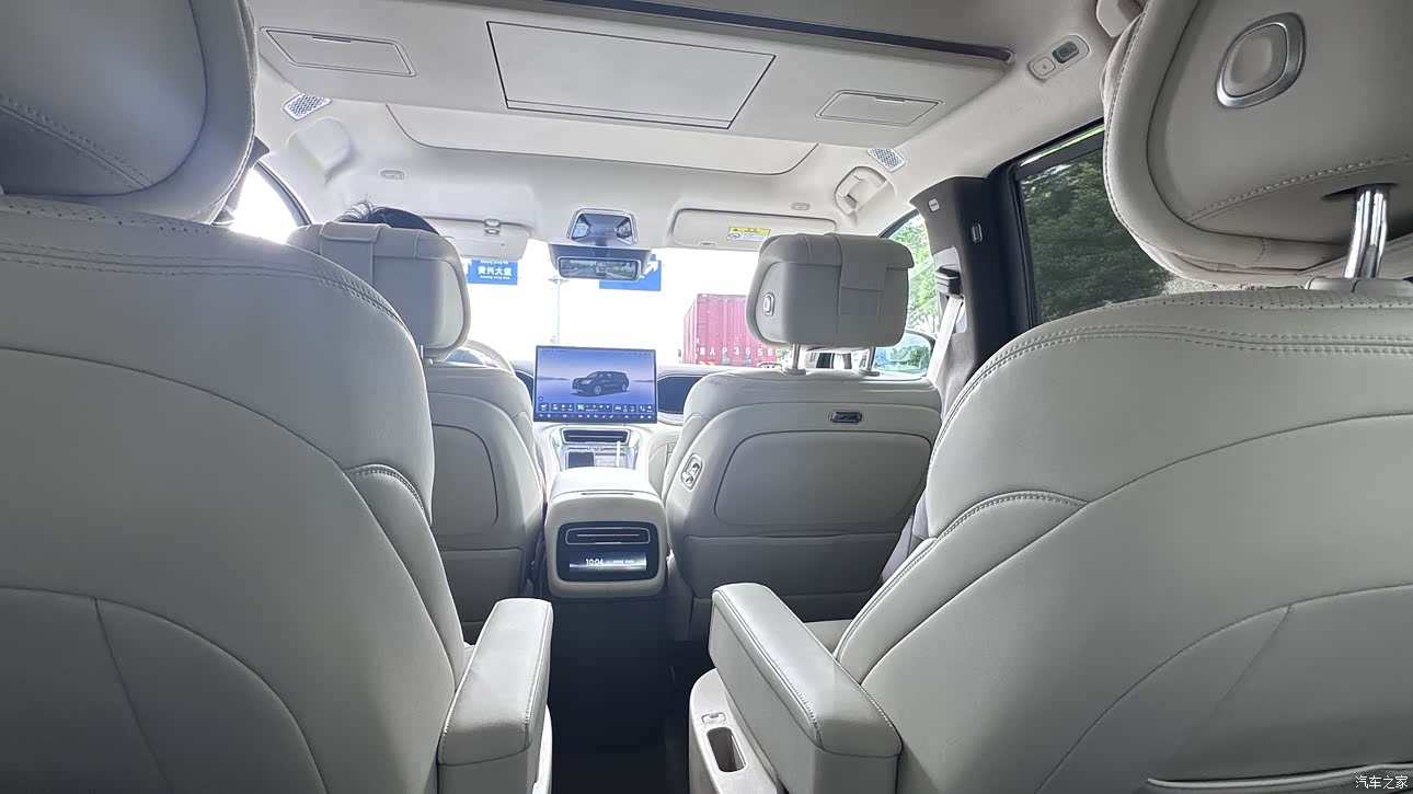 这车里头空间也很大,就拿我来说吧,身高1米76,体重75kg,特意钻第三排试了试,把第二排放到舒服的位置,腿往前伸,离二排椅背还有一拳头多的富余!头也不会觉得顶。说实在的,这个第三排我觉得比D9要舒服。第二排就更不用说了,那是相当的不错。哈哈。