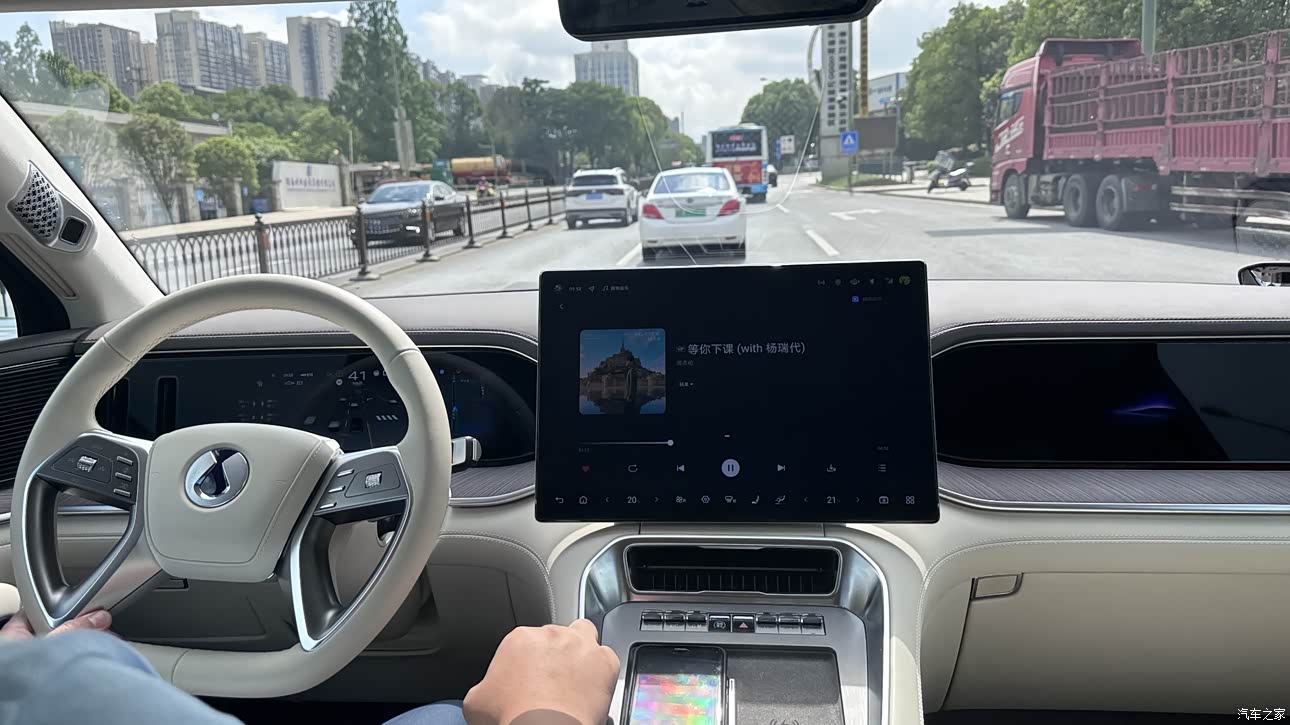驾驶起来这个车是非常的舒服,它是用了腾势特有的易三方。过大弯的时候没有什么侧倾的感觉。不过我试驾的这段路线都是铺装路面,感受不出它的颠簸。