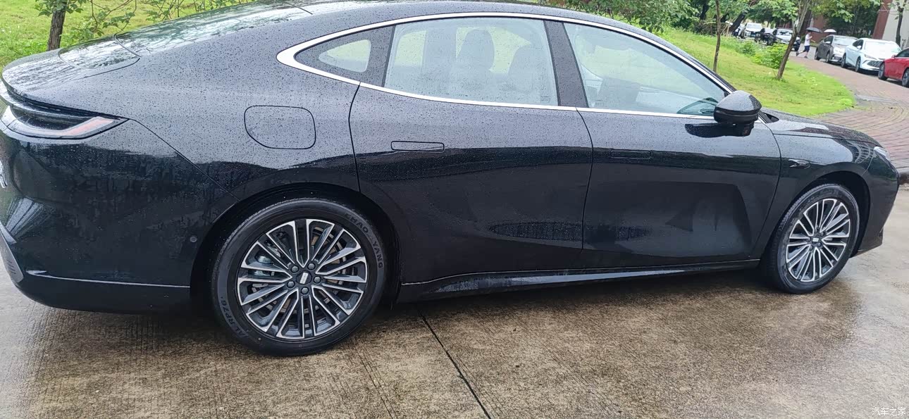 车辆5米长,轴距近3米,从侧面看很帅,当初就是冲这个外观和性能来的。性价比高。低配轮毂都有18寸,很赞!入门即旗舰。外部的灯光造型也很好看。总体上外观满分