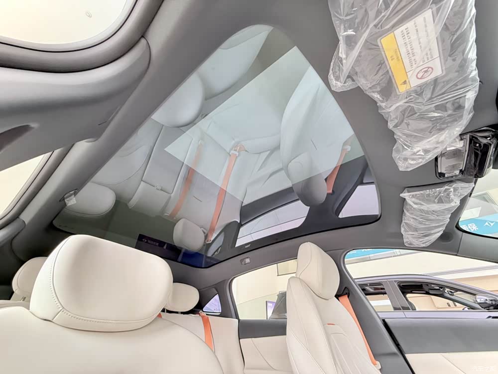 内饰设计与外形的至简设计理念保持一致!在配色用材质拼接方面营造出科技简约典雅的氛围,中控台大量的软质材料的包裹以及网面材料的运用,显得舒适运动。全车配备了64色环绕式氛围灯,全景天幕,智能香氛系统,主驾座椅支持通风、加热、记忆、按摩等功能,为舒适性和浪漫氛围加分。