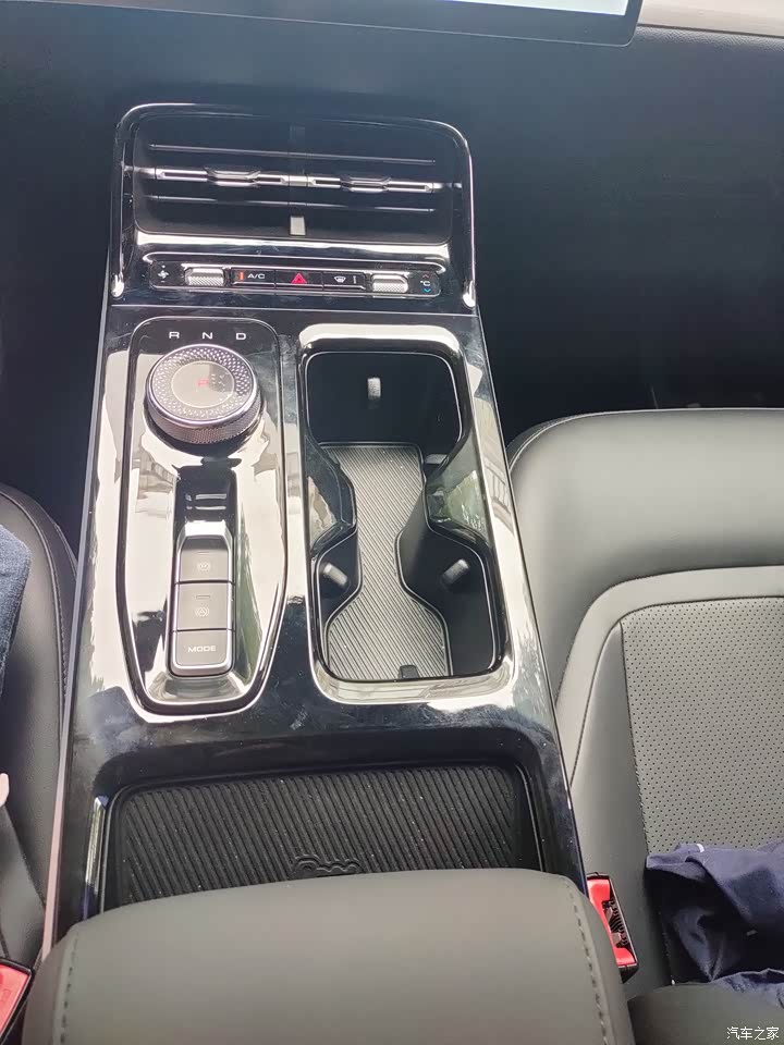 杯架设计很合理,一个放饮料,一个放水杯,而且这个大小是可以调节的,杯子放进去,开车的时候就不会晃来晃去了。 旋钮换挡有人说别扭,但我觉得挺时尚的,操作很方便! 放钥匙的那位置就比较尴尬了,放个钥匙吧,又太大,反而是放手机,位置是刚刚好。