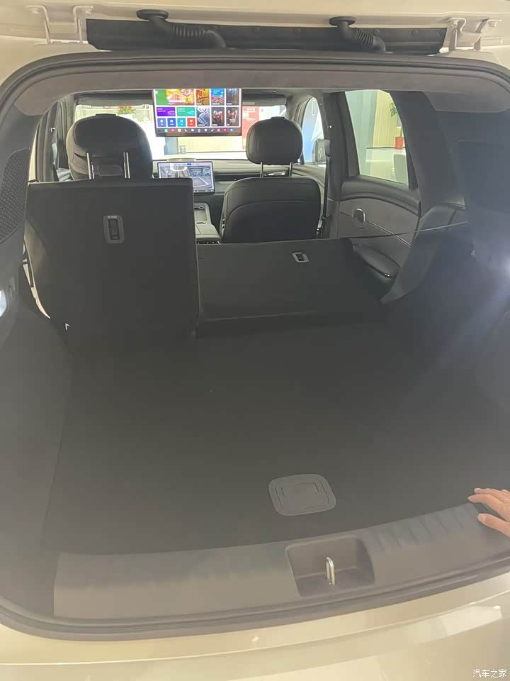 这台车的长度4.9米,宽度1.95米,高度1.78米,光看这个尺寸,就完全不用担心它的内部空间了。 本人身高180左右,我坐到后排以后,用拳头比了一比,大概到前排的距离有3~4个拳头大小,这个空间感简直无敌了,就拿我的小鹏p7来说,简直和它毫无可比性,从我看过的其他同级别尺寸的车来说空间也稍有优势。 而且二排座椅可以放倒135度,利用性更丰富,也是电动调节的豪华感拉满。 另外这台车的后备箱空间也是非常的大,平时做生意拉个货之类的都不用叫货拉拉的,可谓是商用家用都很不错。
