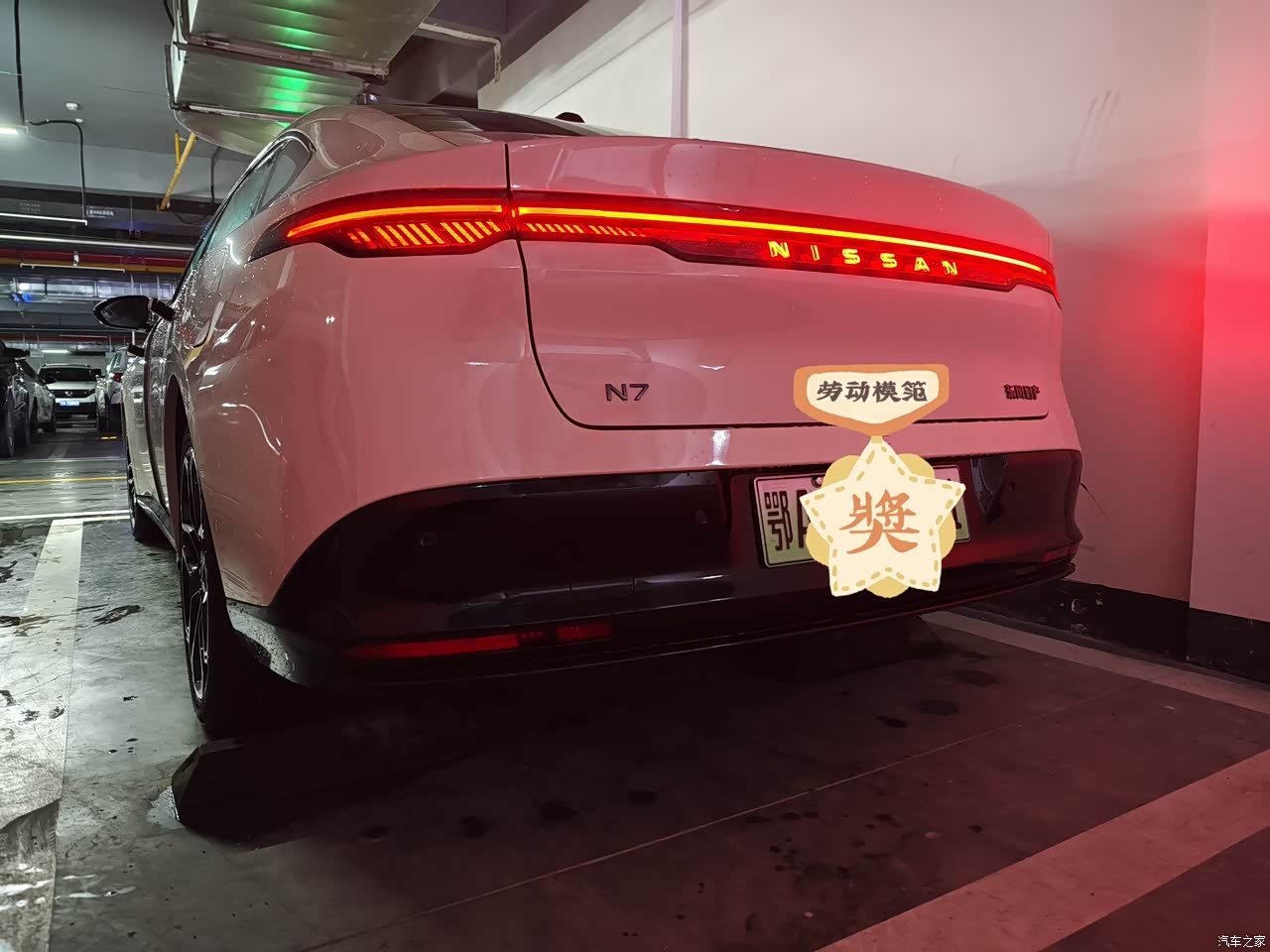 作为东风日产 N7 的 首批用户,两周就拿到车的效率确实很高,如今看着延长的提车周期,更觉这份“早买早享受”的难得。N7给我的整体感受很鲜明:颜值戳中审美,驾感无缝衔,储物空间比我之前的 SUV 小。但是两米九的轴距,后排空间甚至比原来的SUV要更大。 先说颜值,低趴轿跑线条搭配溜背造型,既有新能源车的科技感,又带着燃油轿跑的优雅动感。限时免费的燕麦米颜色,阳光下偏粉,已经是公司里最靓的仔。 驾驶质感不错,有油车的感觉。平时开舒适模式起步不突兀、加速随踩随有;刹车脚感舒适,跟车时能轻松找到熟悉节奏;方向盘很轻,对辅助驾驶也很满意。现在在高架上 第一时间就切换成智驾。非常期待6月上线的城市辅助NOA。 从SUV切换到轿车,空间变化最直观。溜背设计让后排头顶空间对高个子稍显局促,后备箱开口偏低但容积够用。说点不满意的,行李箱内部上面竟然不加个盖板,有线束裸露,东风南方商城可以 86 块钱买个盖板,觉得这个成本降得不应该,这个成本降的不应该。 总体来说,N7在我看重的颜值、驾感和辅助驾驶上几乎“精准戳中”,空间虽需适应但日常使用足够,加上首批提车的幸运加成,总体满意!