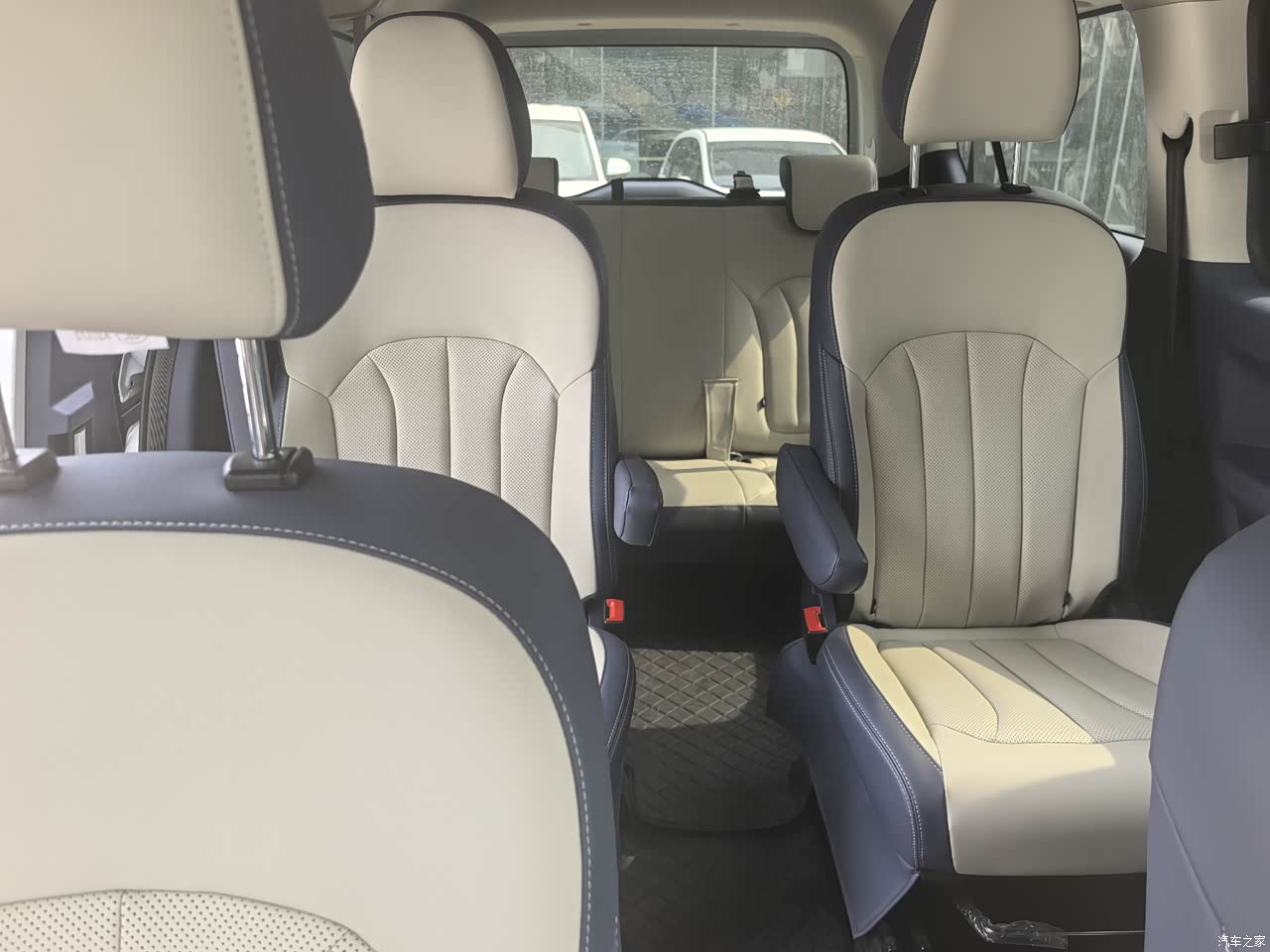 这车蓝白内饰很适合我们这样的公司商务接待用,看着就清新典雅。座椅宽大舒适支撑力不错,一种商务舱的感觉,多少有些奢华的感觉。