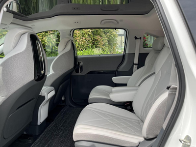 空间设计太懂带娃家庭了,后排儿童安全座椅区域宽敞,孩子坐在上面能自由伸展双腿,还能塞下两个毛绒玩具。车内的储物格多得超乎想象,车门、中控台、扶手箱都有分层设计,零碎小物件都能分类收纳,再也不怕车里乱糟糟。
