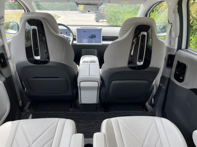 外观简直长在审美点上,圆润可爱的造型像个大玩具。停在小区里总会有人过来问车的情况。前脸的大灯造型独特,像一双笑眯眯的眼睛,点亮后辨识度超高。车尾设计简洁大方,贯穿式尾灯晚上亮起时,像一道彩虹,特别好看。车身小巧精致,停车入库毫无压力,对女司机特别友好。