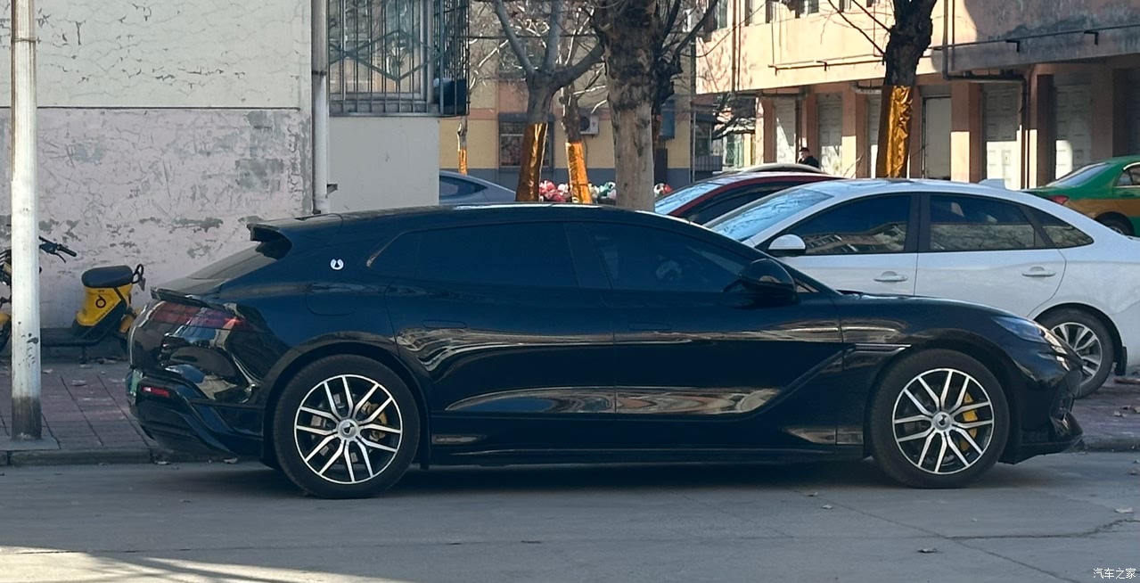 颜值与气场:颜值在线,气场优雅,实车视觉效果高级,外观获得广泛认可,上街回头率高; 基本上朋友都说很帅😏 1. 前脸:未来感与攻击性并存 星际穿越大灯组:狭长的日行灯带+矩阵式激光大灯,夜间点亮时辨识度极高,灯腔内嵌的菱形纹理细节拉满; 封闭式格栅+主动进气口:降低风阻的同时保留性能车元素,实车比官图更霸气,路人回头率超高。 2. 侧面:猎装轿跑的黄金比例 长车头+溜背线条:车长配合溜背车顶,修长优雅; 无框车门+隐藏式门把手:提升科技感,尽显优雅气质; 星芒轮毂+高性能卡钳:大轮毂搭配黄色卡钳,性能范儿十足。 ⚠️槽点:后轮宽胎易卷起泥沙溅到车门,需加装挡泥板。 3. 尾部:争议与惊艳并存 星际尾灯+可发光LOGO:贯穿式尾灯内部采用星际粒子纹理,夜间如星环闪耀; 主动升降尾翼:时速90km/h自动升起,提供下压力(也可手动开启);