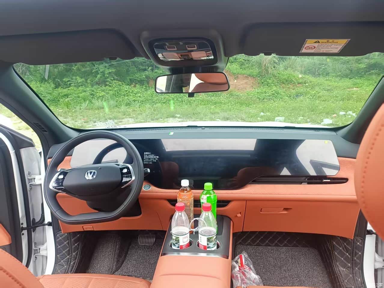 内饰最豪华的就是三联屏加副驾零重力座椅,可以一边按摩一边看剧。由于没有实体按键,车内显得很简洁,座椅都是皮质座椅比织布座椅感受舒适很多。