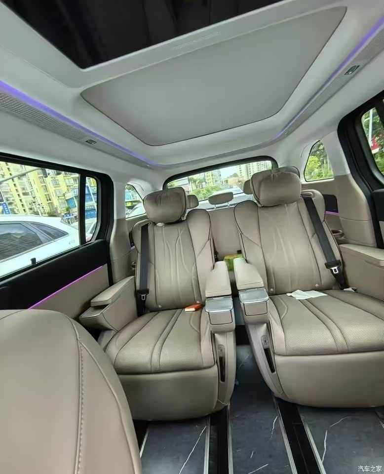 对于这个价格的MPV来讲,车内的用料其实还是挺下本的。前排 50W 无线充电板 车内6个充电接口,一家子出门手机电量不再告急。车内还有多色氛围灯营造浪漫气氛,多层隔音玻璃让车内静谧,23 个扬声器的音响系统,音质超棒,听歌的时候仿佛置身音乐会现场
