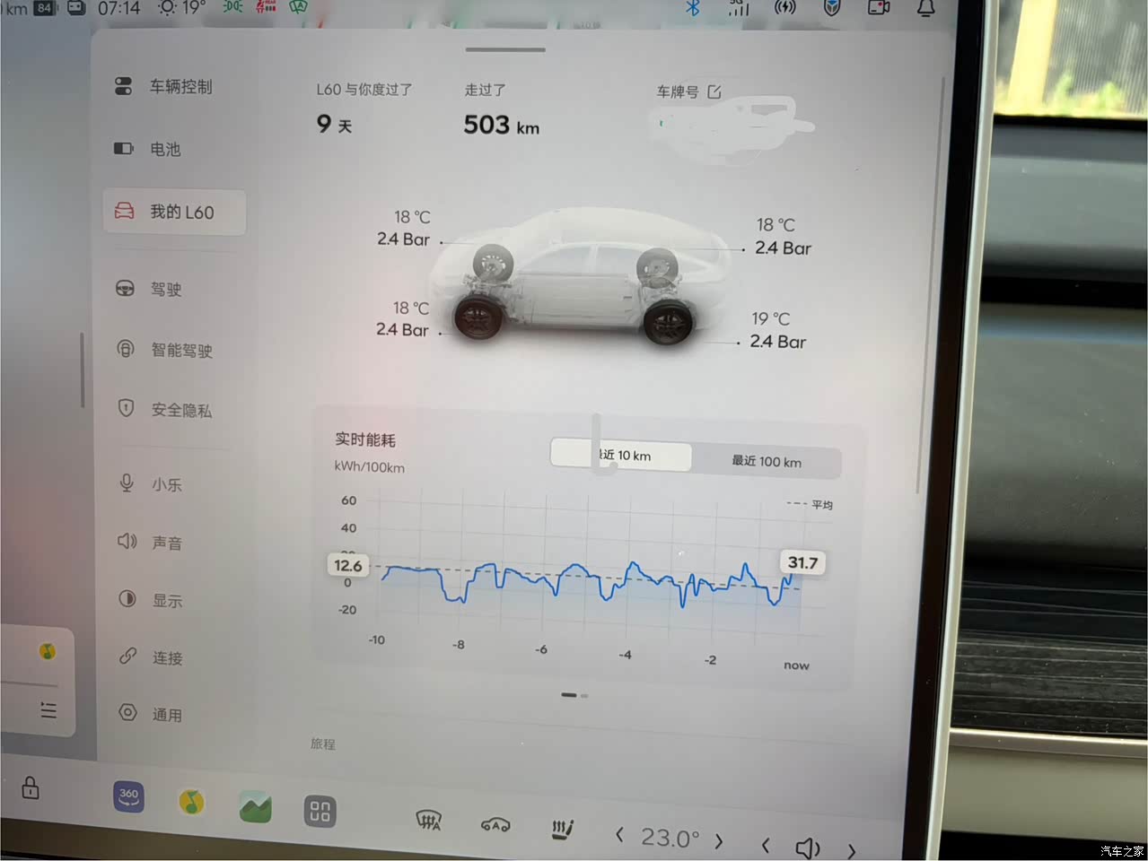 目前行驶约500公里。城区开空调电耗约12度,不开空调约11度,高速NOA约17度(顶速跑),加装了家用充电桩,一晚上就能充满,3毛钱的电费太香了,还没有体验换电。
