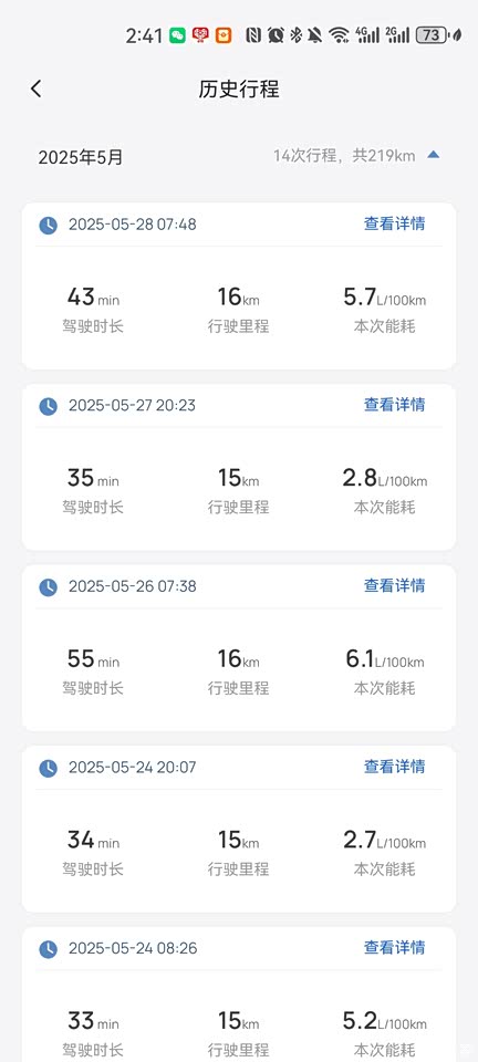 上班堵,油耗六个多,下班不堵,油耗两个多,综合四个多,续航还是很满意的。