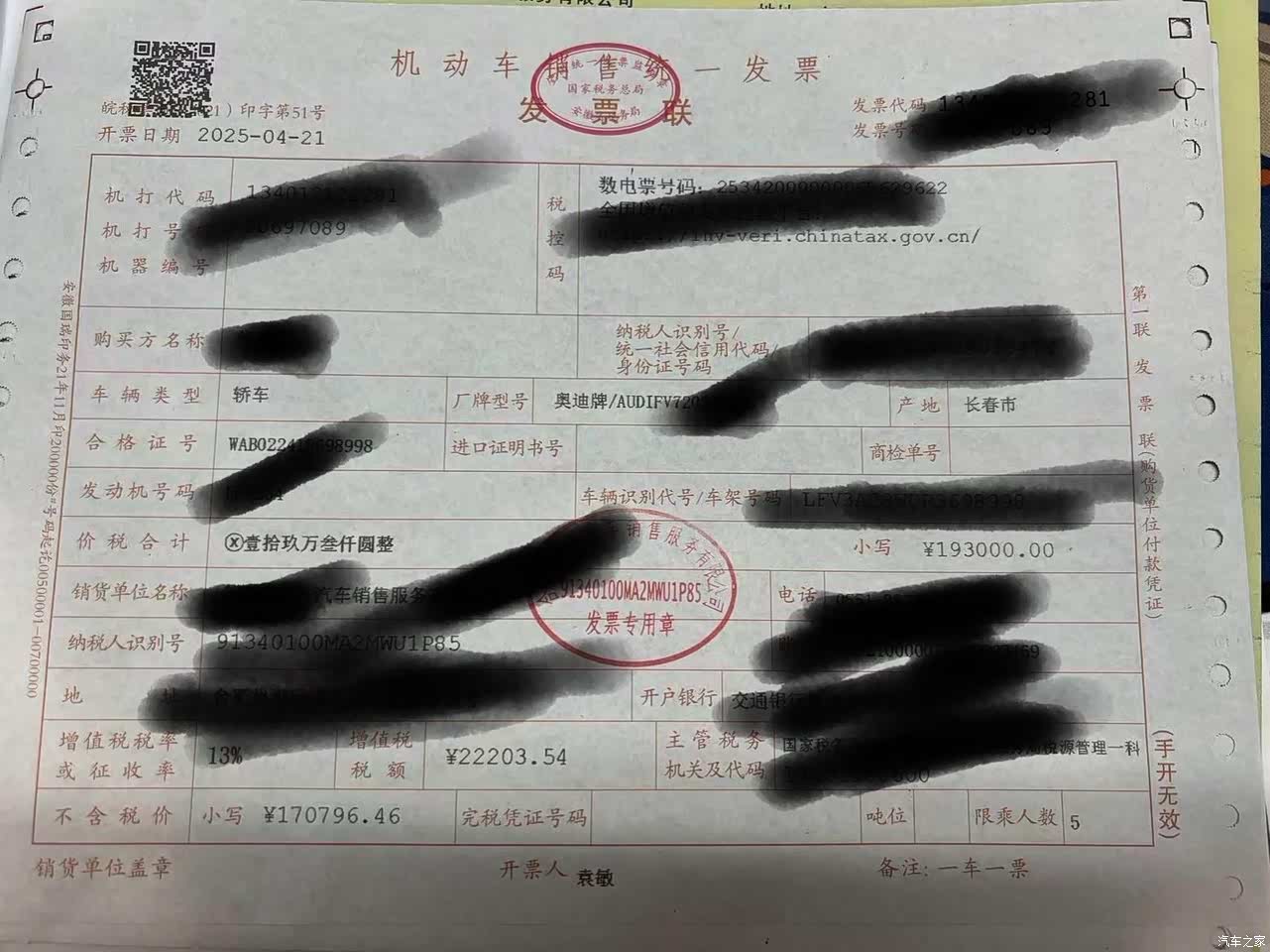 22款奥迪A4L时尚动感版本后来因为漏水多次维修未解决问题通过法律途径给我更换新车。 于2025年4月21日提的2024款奥迪A4L时尚动感型车价没要钱,保险9028,购置税17079,上牌费130,相当于落地总价支付了2万7千多吧!(之前22款没用完的保险退掉了),合同发票合格证手续都正常齐全,这次多了个全车终身质保。 很多人问我为什么不选择卖掉或者换别的款呢?综合下来,我觉得外观在线,是我的理想车型,内饰普遍认为太拉胯,同级别没法比,我倒是觉得还行吧,中规中矩,没过多要求,驾驶感受不错,底盘也稳,个人驾驶习惯长期地板油油耗10.8,加油只加中石化!因为五一要出去自驾游,直接开了来回1200公里高速,胎噪有点大,但是开起来依旧是那个味!至于时尚的氛围灯,后排出风我这次没有改了,之前22款用了快3年,氛围灯个别有变色,后排出风也没多大效果,必须开启脚底出风后排出风才能感觉到微弱的小风,完全没必要了,也不想来来回回拆。App 对于定位和爆闪鸣笛功经过软件更新后被阉割了,这点车企属实一点担当都没有!车机App 做的那么拉闸,还要阉割,这点玩意哪来的脸让消费者买流量,上车直接carplay用用得了。