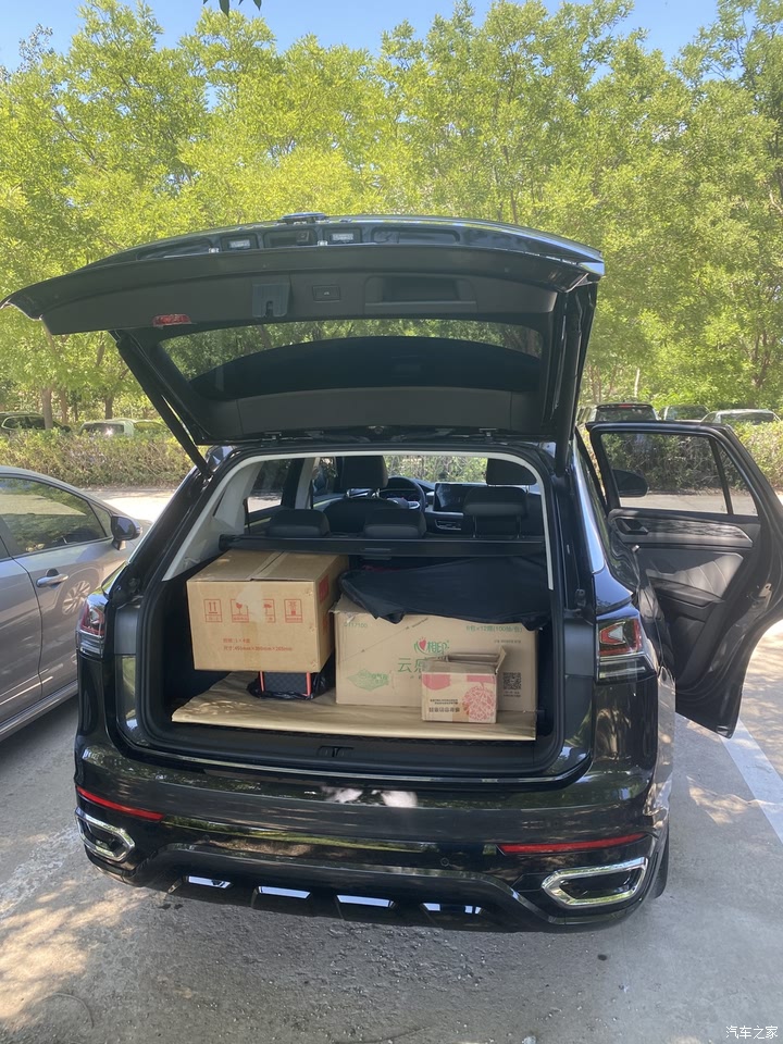 空间也是探岳的一大优势,轴距长达2.731米,坐在后排,腿部和头部空间都很宽敞,我1.8m,90KG,后排还有一拳多的空间绝对是没压力,就算长途出行也不会觉得压抑。后备箱容积也很大,一家人出去旅游,行李随便装。