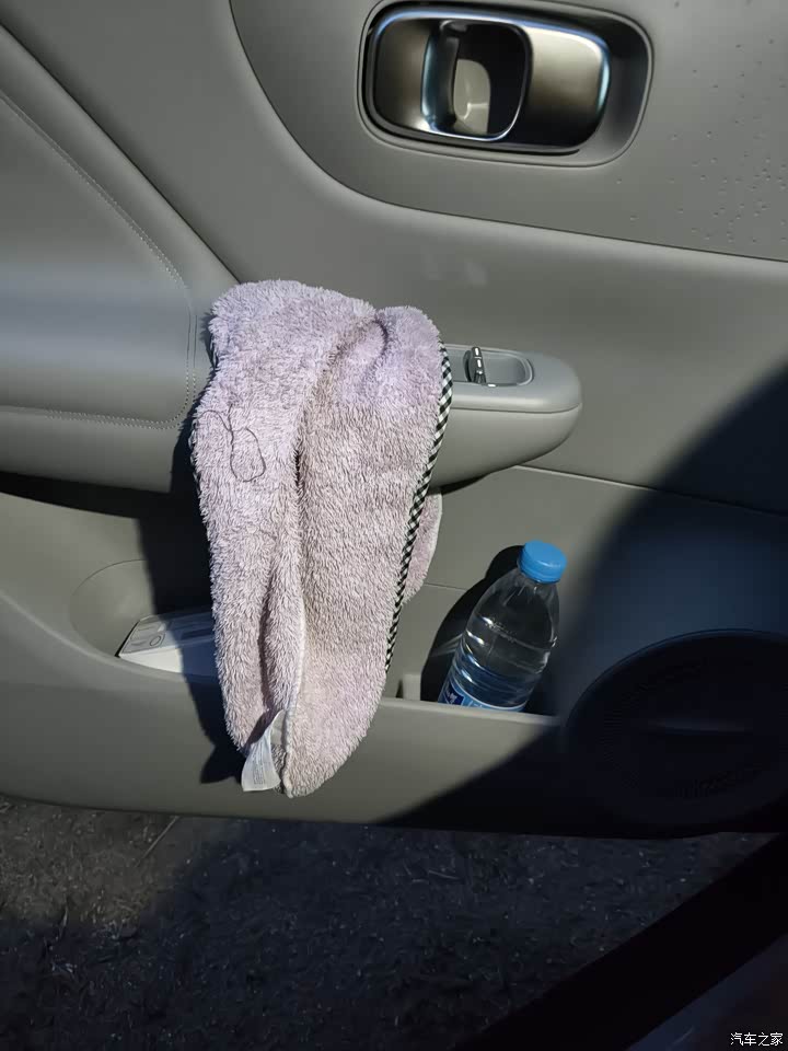 最喜欢的就是扶手这个位置,挂个毛巾或者擦车巾非常不错。竹影灰内饰,干净但是没有紫色内饰耐脏。按了个紫色后备箱垫。算个撞色吧😂这垫子和原来的紫不一样。