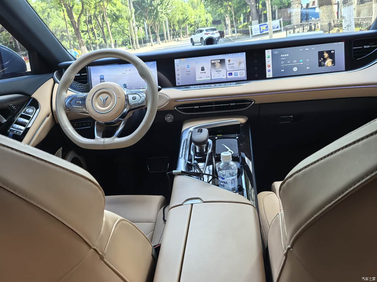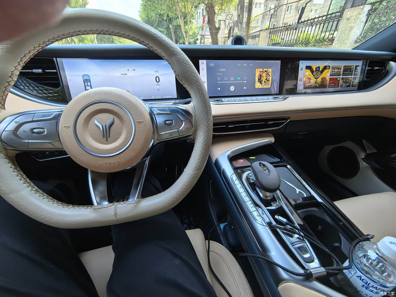 浅色内饰容易脏,就是得特别注意,但是去洗车店用湿毛巾一擦就能擦干净,就是不知道饮料洒在座椅上能不能擦干净,还有三联屏的设计看起来也是比较豪华,仪式感拉满