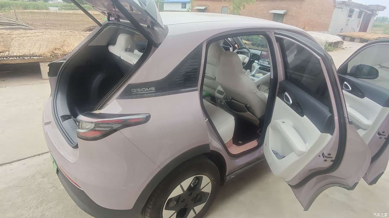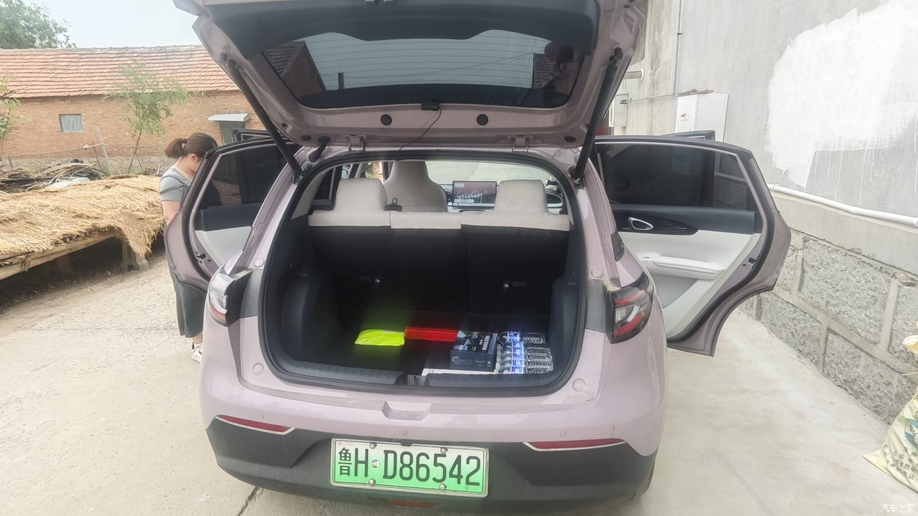 空间没得说,主驾座椅我185的身高坐进去,座椅不需要放到最低也不碰头,副驾虽然是手动调节的,不过空间确实可以,副驾空间都很大,这个没什么好说的。前备箱空间也不小,可以放挺多东西,我有个收纳箱,放进去刚刚好,出去野餐出去玩,前面可以放点饮料和烧烤之类的,基本可以全放进去。再说说后排,后排空间真的舒服,前段时间带我外甥女去游乐园玩,她在后面都可以站起来,就是我开车,主驾座椅调好,后面坐个胖一点的也不挤,空间是真的大。后排座椅下面那个也有个格子,好像310的没有,410标配的,那个放东西的格子还能放不少东西,可以把充电枪放进去,多一个地方又可以多放一些东西。这车后备箱和看过别的A0的小型车还不一样,买车之前对比过几个,后备箱基本没有多大空间,真要放点东西还要把后排放倒才能放。放倒后排又坐不了人,这个就不会,和家用轿车空间一样大,放点东西也不影响后排空间。