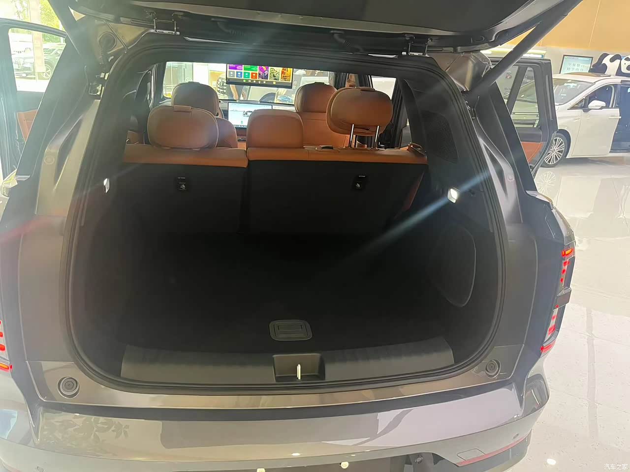 空间5分 这台车最大的卖点就是空间,这也是我需要增加一台suv的重要理由,毕竟小孩长大了经常出去玩,空间是刚需。 前排空间非常大,坐上去头部以及腿部肩部空间都很充裕,这种大是全方位的大,坐进去以后再回到我的小鹏P5里面,就觉得我的车空间真是特别的小。 来到后排,后排的地面是平的舒适性高,坐三个人也不会感到拥挤,而且这台车还可以电动调节后排座椅的角度这一点让我觉得非常的意外,现在的国产车已经卷到这种程度了,太离谱了。 车内储物空间丰富,前排中间镂空设计可以放下更多物品,门把手和其他地方还有一些零零碎碎的空间,可以放很多小零小碎。 后备箱也很大一家出行都足够使用,并且后备箱盖板的下方还有一个空间,可以放一些东西。