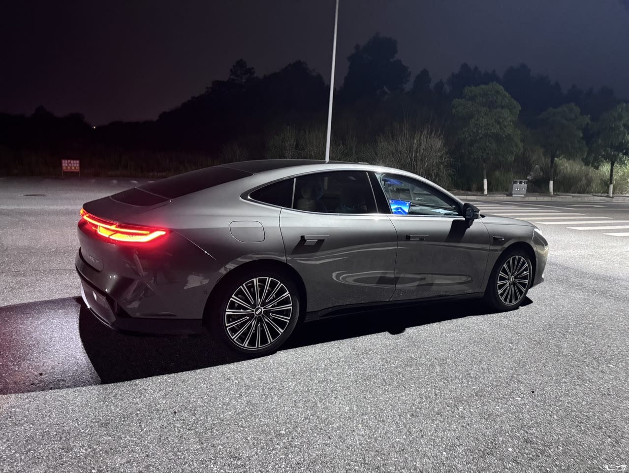 尺寸外观:整个车5米,外面看还是挺显长显大的。外观方面个人还是比较喜欢的。来试驾之前纠结蓝色还是绿色,见到实车之后感觉绿色更有金属质感,蓝色肉眼看发灰、塑料质感强点。 2.内饰座椅音响:上车之后车里是没有“车味”的,这点好评,我还体验了一把右后的老板座,可以边按摩边躺着坐车确实舒服。后排还是挺宽敞的。座椅电动调节、主驾座椅记忆功能还可以。因为试驾不能上高速,感觉隔音还够用(自己上高速都会放音乐,所以不是特别在乎隔音问题)。音响还可以。 3.方向盘和按键:方向盘不是圆形的,横长竖短,所以试驾开这车掉头时膝盖有点挡手,以至于我试驾时一直把座椅往底盘调(后面想了一下,其实应该把方向盘整体往上调就能好很多)。这车是怀挡,学习了一下也就适应了。雨刮在左边。左边的转向灯把控制感挺好,不像驱逐舰一样塑料质感、容易打灯打过头。也是在星耀8上第一次体验hud,不用再低头看车速了很方便,试了一下戴着偏振光太阳镜hud居然还能看到。 4.整体驾驶感受:可能因为是EMP版本,动力有点太猛,不太适应,会有起步点头的感觉(因此我还是比较偏向EMI版本)。刹车脚感不太紧致,但是刹车很灵敏,比较线性不容易点头。 5.底盘、天窗、智能:底盘的路感还是有的,个人觉得比较硬,过坑时整个车有被小绊了一脚的感觉。作为对比,驱逐舰的底盘质感就是“散”了,过坑连车窗都在“咔咔”。全景天窗阻挡紫外线能力还可以. 6.驾驶感受:当在70时速下,车内还是比较安静的。低速情况下,车内噪音表现较好。提速轻松,不管是智能模式和性能模式,其提速都非常明显,而且不会有纯电车那种过于激进的提速,开起来舒服。