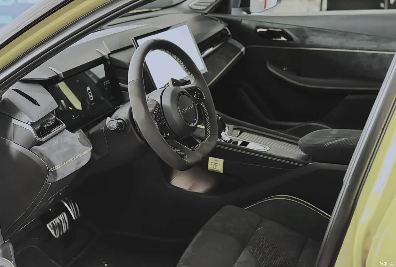 1. 赛道基因外观:碳纤维前唇+尾翼+宽体套件极具攻击性,哑光灰色车漆(官方称「赛道灰」)在不同光线下呈现金属颗粒质感,19英寸锻造轮毂配金色卡钳堪称点睛之笔。 2. 沉浸式座舱:翻毛皮覆盖率达90%(方向盘/座椅/门板/顶棚),赛道桶椅支撑性肉眼可见,金色安全带和缝线呼应性能主题。