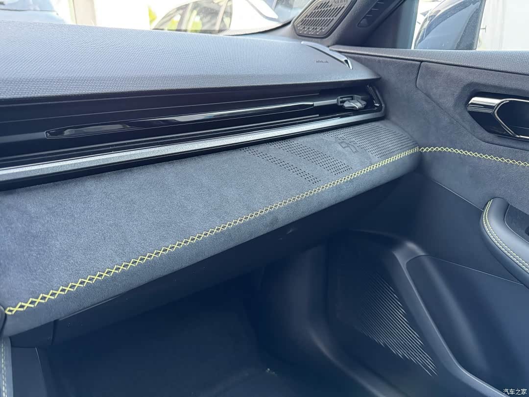 用料堪称同级标杆!Alcantara方向盘握感厚实,金属换挡拨片反馈清脆;新设计的电子挡把刻有「+」标识。细节惊喜: - 空调出风口采用蜂窝状金属网 - 脚踏板为铝合金防滑设计 - 顶棚麂皮触感细腻