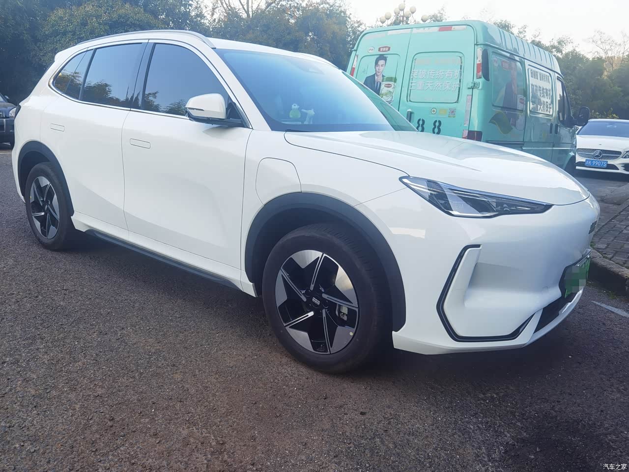 银河E5的外形看着饱满大气,白色的耐看,是越看越喜欢的。选白色除了看着颜值高以外,也是出于白色显眼,识别度高,安全更好些。