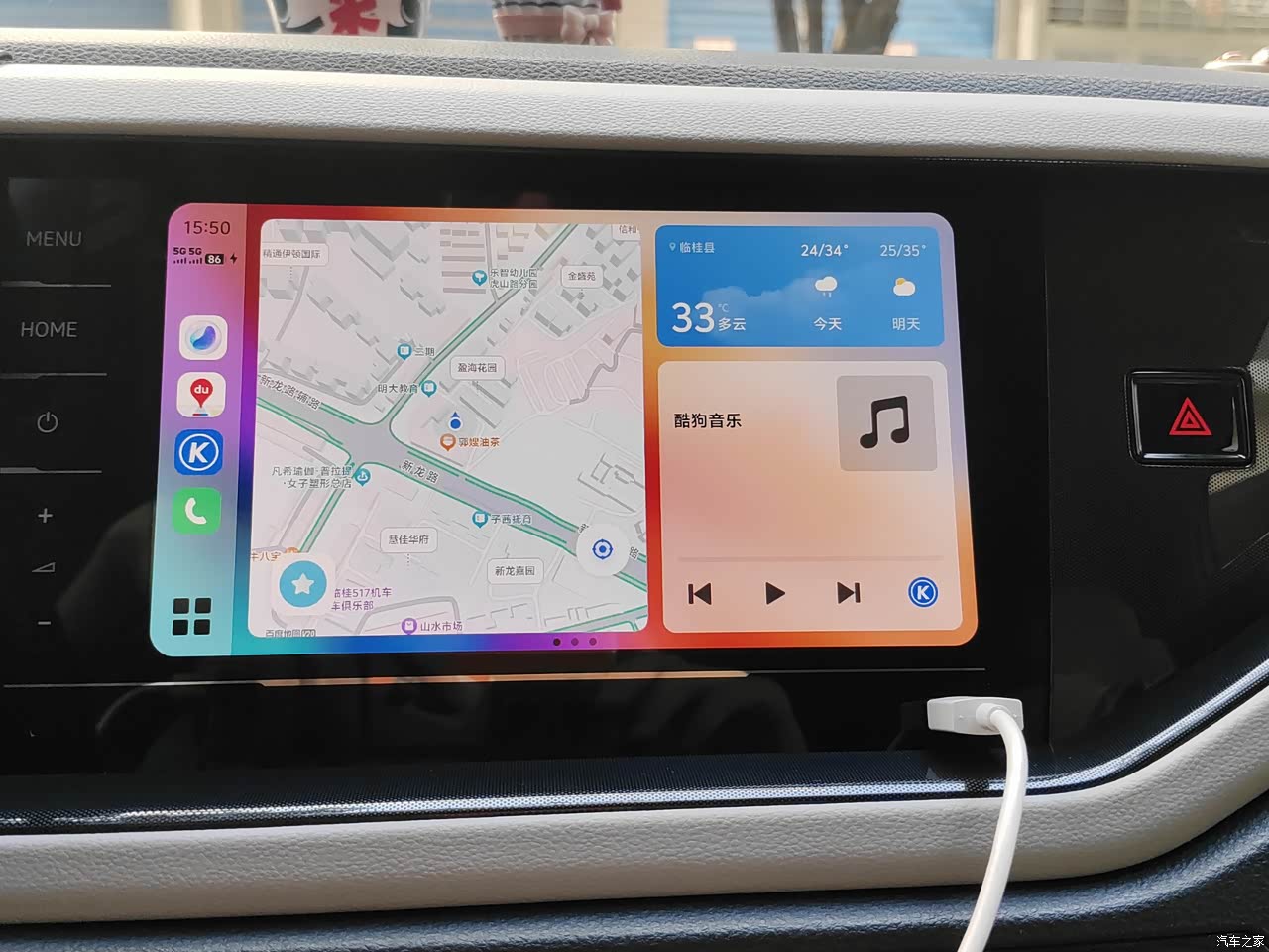 内饰设计延续了简约实用的风格。中控台线条平直硬朗,虽然大量使用硬质塑料材质,但通过双色拼接工艺点缀,视觉效果并不单调。8英寸中控触摸屏集成了多媒体娱乐、蓝牙连接、倒车影像等基础功能,操作界面简洁易懂,就是使用有点卡顿,不智能。