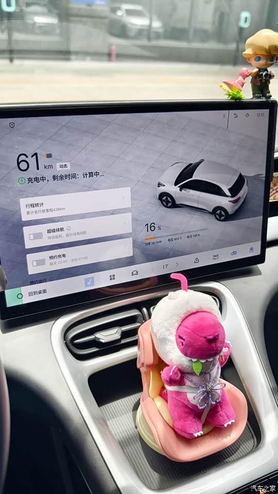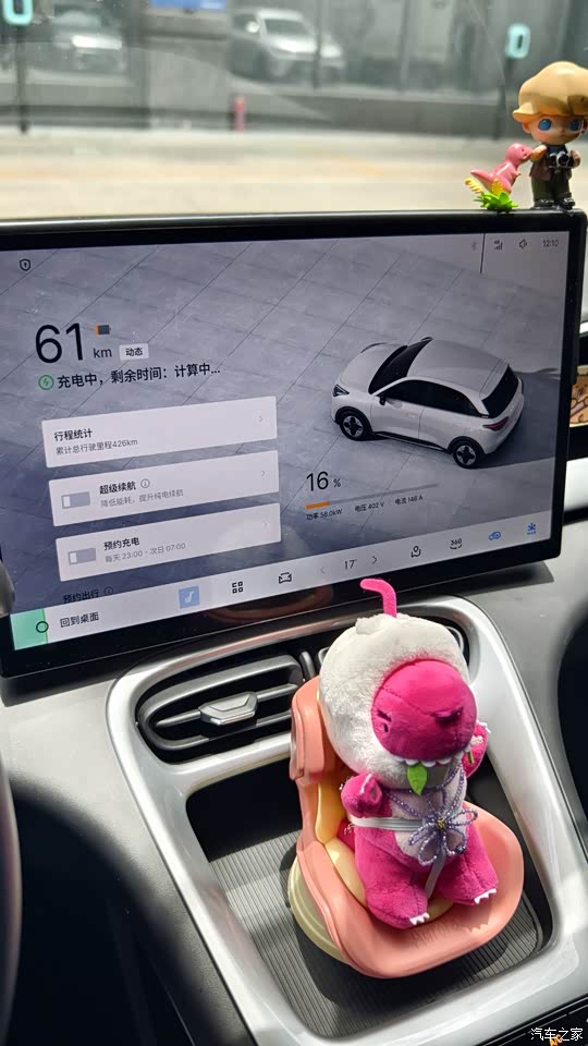 买的探索410版本,如果调整为动态续航的话充满大概380,因为我通勤都是市区短途,所以里程数偏低,开三周充一次电即可。