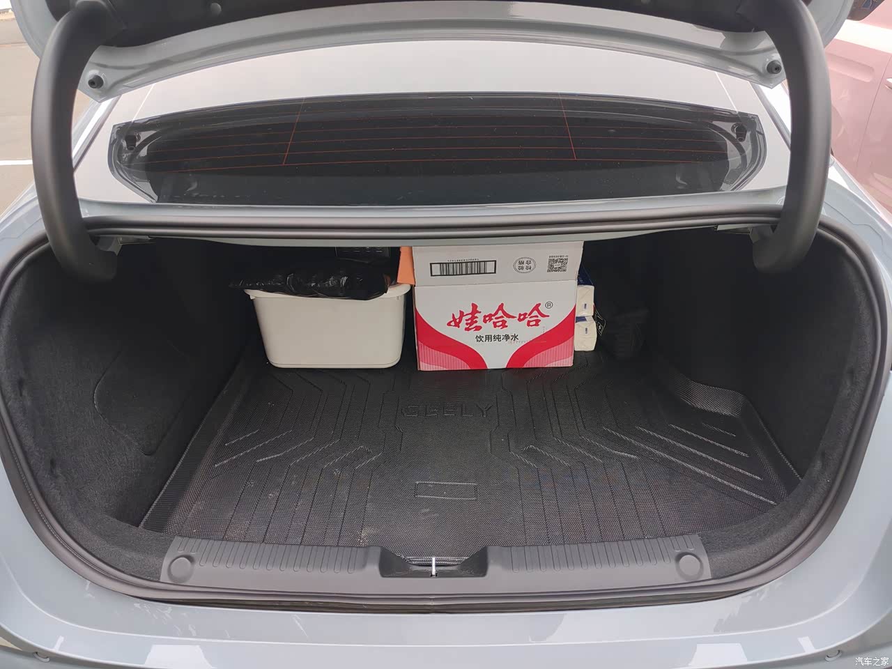 后备箱开口太大了,我必备一大箱矿泉水,一个储物箱,其他就是出去玩带点桌椅凳子,空间还是绰绰有余